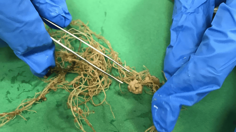 To see how microbial activity changes near and inside roots, the researchers chose crimson clover, or Trifolium incarnatum, as a test plant. It’s a legume commonly grown as a cover crop in the U.S. Northeast that forms root nodules with bacteria like the one shown here.